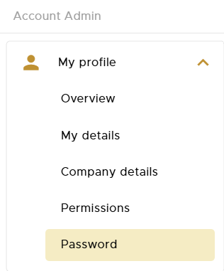 1. In the Postworks Portal, on the left side menu, go to Account Admin → My Profile → Password.